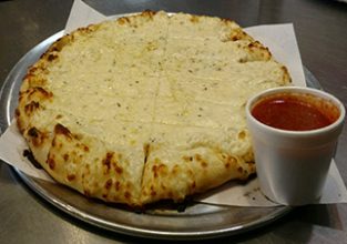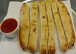 12″ pizza w/o sauce and cut in strips, with garlic, parmesan, and oregano.