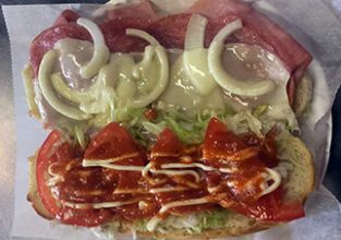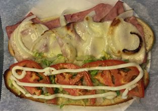 (ham & salami) w/lettuce, tomato, mayo & onion & Italian dressing