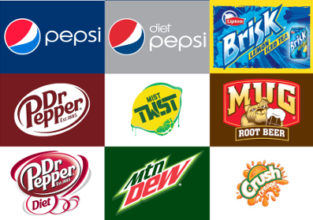 Pepsi, Diet Pepsi, Mountain Dew, Punch, Dr. Pepper, Diet Dr. Pepper, Orange, Root Beer, Brewed Sweet Tea, Lemonade.